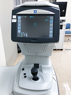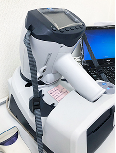 通常の屈折測定機器にお顔を乗せられない、小さなお子様や体の不自由な方に対して、近視・遠視・乱視等を測定する機器です。